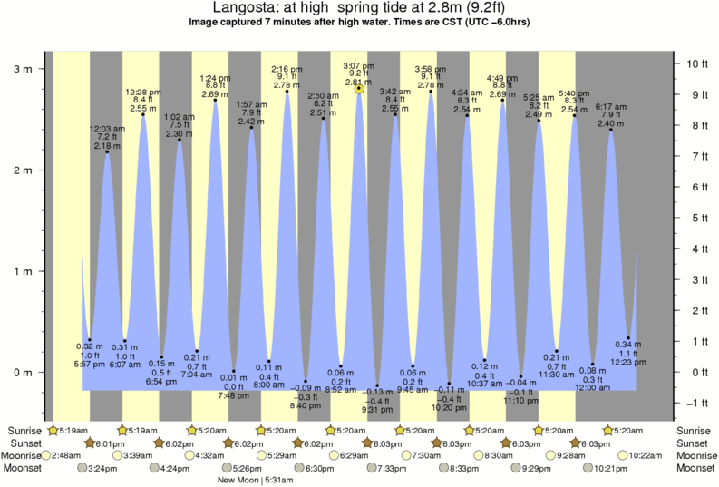 Image captured 7 minutes after high water (at high spring tide). Tide height was 2.8m (9.2 ft). Range 3.05m (10.0 ft). Toggle tide graph