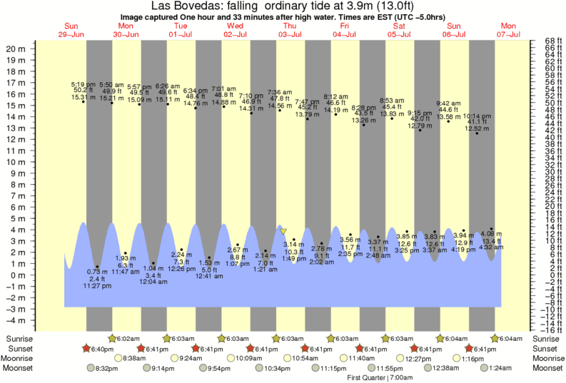 Image captured One hour and 33 minutes after high water (falling ordinary tide). Tide height was 3.9m (13.0 ft). Range 21.45m (70.4 ft). Toggle tide graph