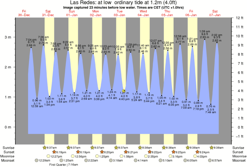 Image captured 23 minutes before low water (at low ordinary tide). Tide height was 1.2m (4.0 ft). Range 3.53m (11.6 ft). Toggle tide graph