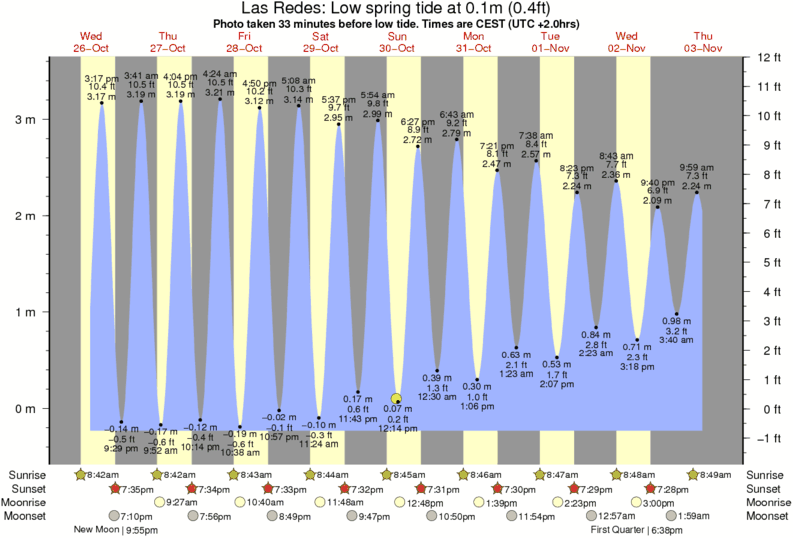 Image captured 29 minutes before low water (at low spring tide). Tide height was 0.4m (1.3 ft). Range 3.53m (11.6 ft). Toggle tide graph