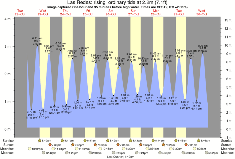 Image captured One hour and 35 minutes before high water (rising ordinary tide). Tide height was 2.2m (7.1 ft). Range 3.65m (12.0 ft). Toggle tide graph