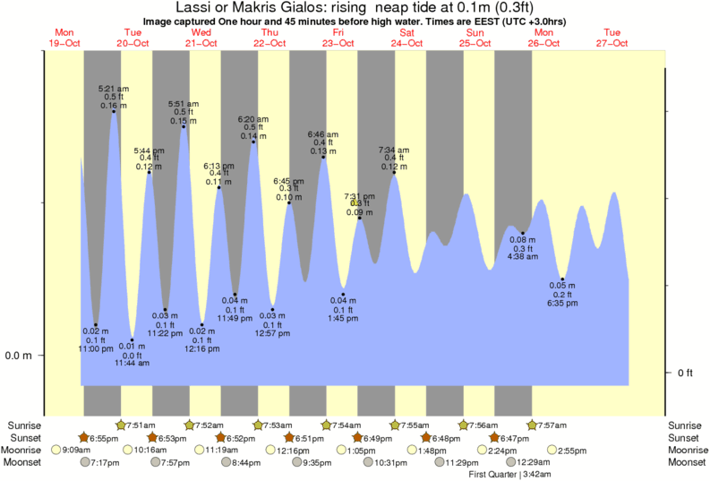 Image captured One hour and 45 minutes before high water (rising neap tide). Tide height was 0.1m (0.3 ft). Range 0.20m (0.7 ft). Toggle tide graph