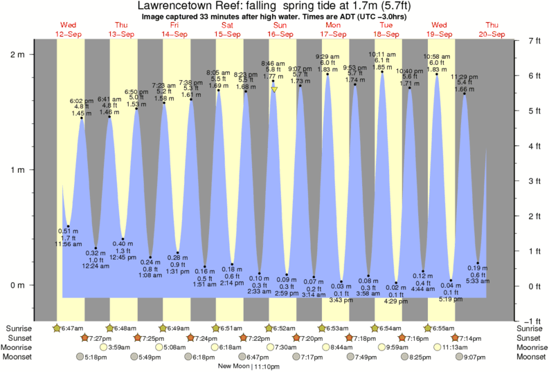 Image captured 33 minutes after high water (falling spring tide). Tide height was 1.7m (5.7 ft). Range 2.04m (6.7 ft). Toggle tide graph