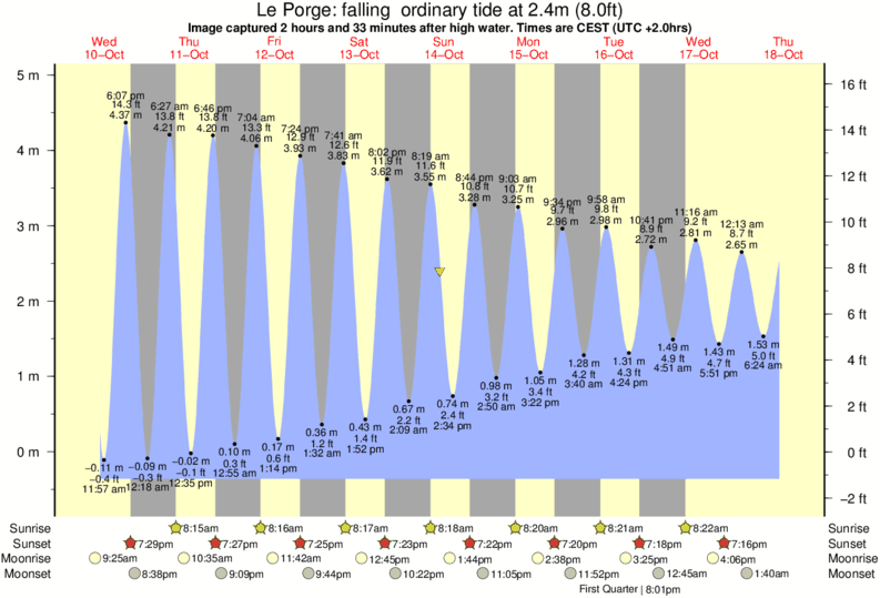 Image captured 2 hours and 33 minutes after high water (falling ordinary tide). Tide height was 2.4m (8.0 ft). Range 5.01m (16.4 ft). Toggle tide graph