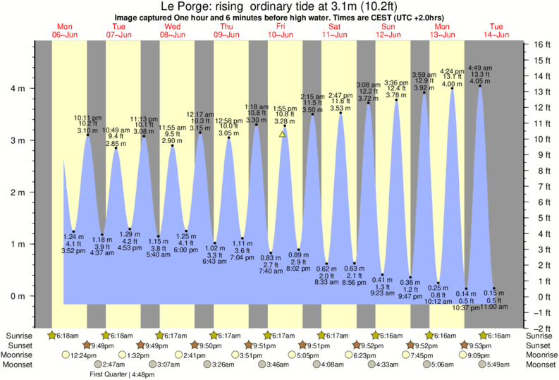 Image captured One hour and 6 minutes before high water (rising ordinary tide). Tide height was 3.1m (10.2 ft). Range 4.62m (15.2 ft). Toggle tide graph