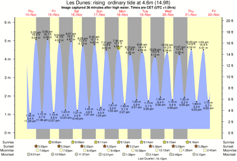 Image captured 36 minutes after high water (rising ordinary tide). Tide height was 4.6m (14.9 ft). Range 5.52m (18.1 ft). Toggle tide graph