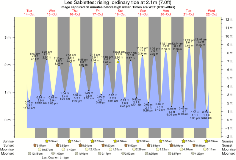 Image captured 56 minutes before high water (rising ordinary tide). Tide height was 2.1m (7.0 ft). Range 3.68m (12.1 ft). Toggle tide graph