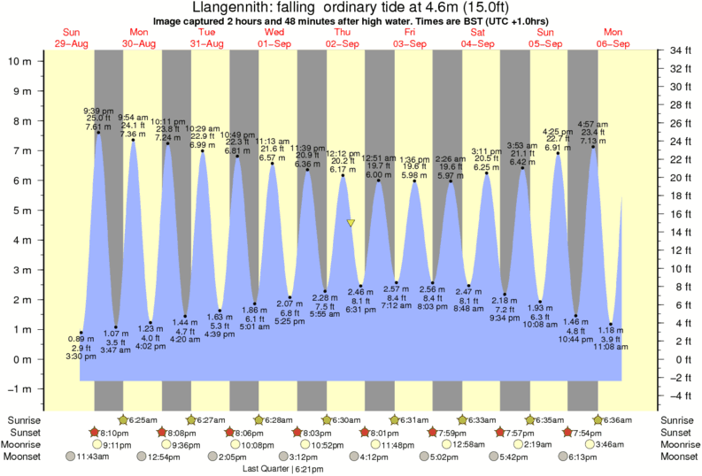 Image captured 2 hours and 48 minutes after high water (falling ordinary tide). Tide height was 4.6m (15.0 ft). Range 10.10m (33.1 ft). Toggle tide graph