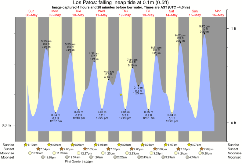 Image captured 4 hours and 28 minutes before low water (falling neap tide). Tide height was 0.1m (0.5 ft). Range 0.34m (1.1 ft). Toggle tide graph