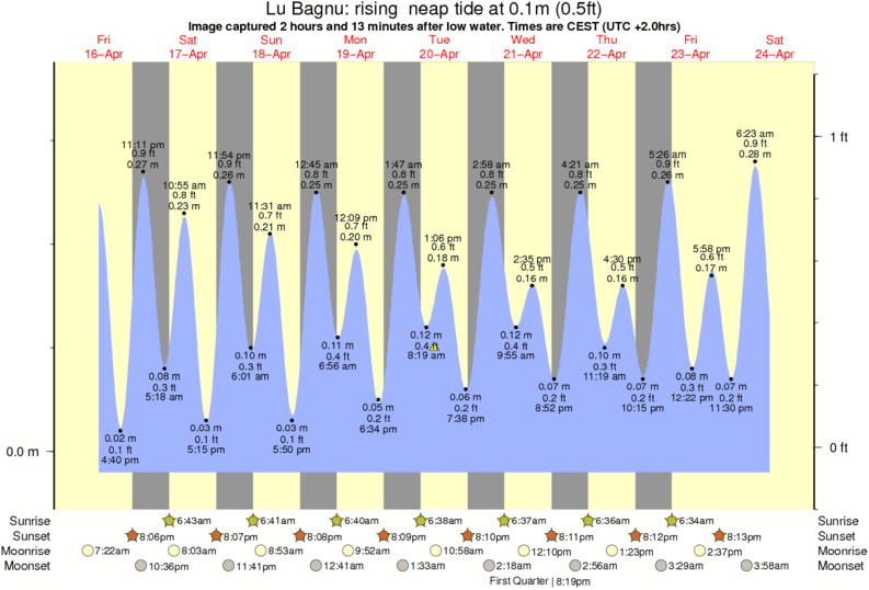 Image captured 2 hours and 13 minutes after low water (rising neap tide). Tide height was 0.1m (0.5 ft). Range 0.36m (1.2 ft). Toggle tide graph