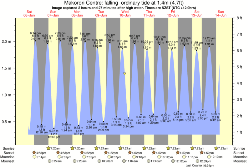 Image captured 2 hours and 27 minutes after high water (falling ordinary tide). Tide height was 1.4m (4.7 ft). Range 1.98m (6.5 ft). Toggle tide graph
