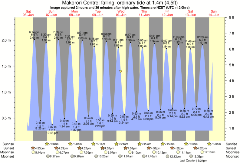 Image captured 2 hours and 36 minutes after high water (falling ordinary tide). Tide height was 1.4m (4.5 ft). Range 1.98m (6.5 ft). Toggle tide graph