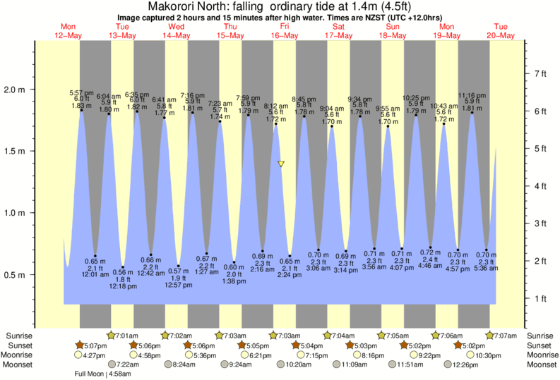 Image captured 2 hours and 15 minutes after high water (falling ordinary tide). Tide height was 1.4m (4.5 ft). Range 1.94m (6.4 ft). Toggle tide graph