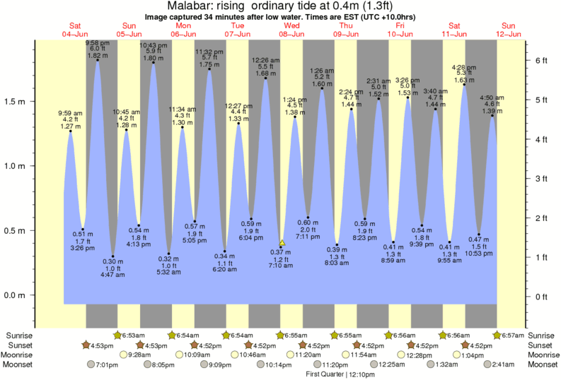 Forecast wind and swell just offshore from Malabar around the time the photo was taken