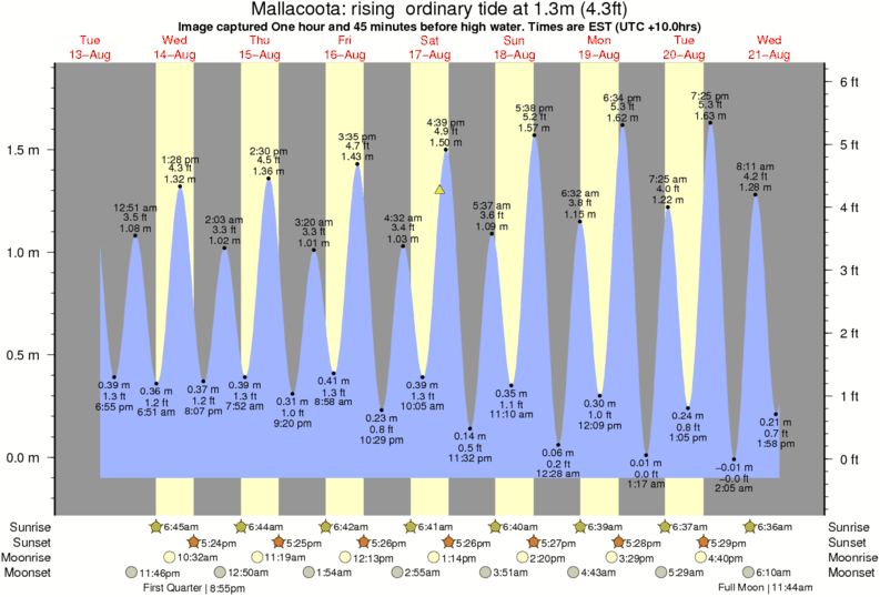 Image captured One hour and 45 minutes before high water (rising ordinary tide). Tide height was 1.3m (4.3 ft). Range 1.84m (6.0 ft). Toggle tide graph