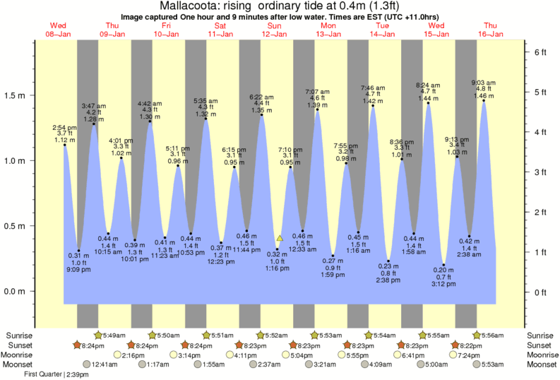 Image captured One hour and 9 minutes after low water (rising ordinary tide). Tide height was 0.4m (1.3 ft). Range 1.84m (6.0 ft). Toggle tide graph