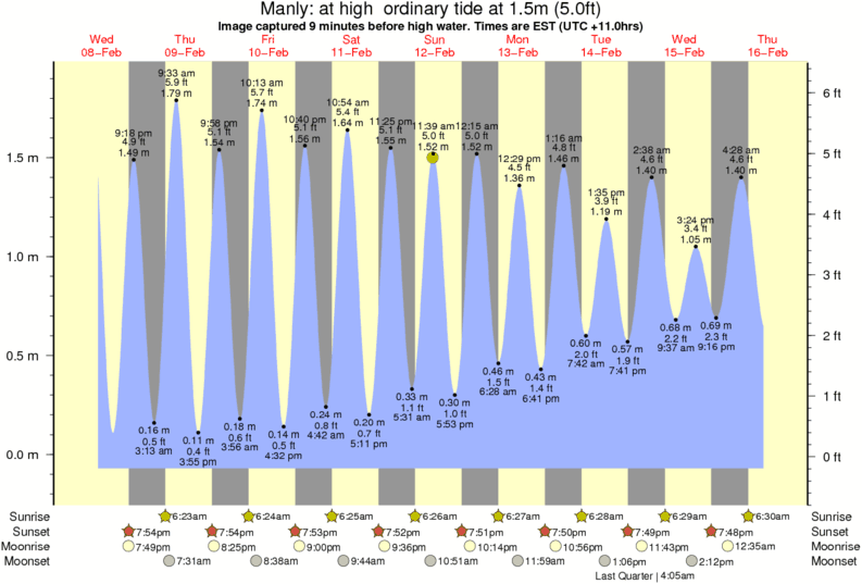 Image captured 9 minutes before high water (at high ordinary tide). Tide height was 1.5m (5.0 ft). Range 1.87m (6.1 ft). Toggle tide graph