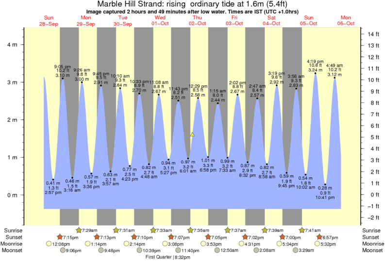 Image captured 2 hours and 49 minutes after low water (rising ordinary tide). Tide height was 1.6m (5.4 ft). Range 4.39m (14.4 ft). Toggle tide graph