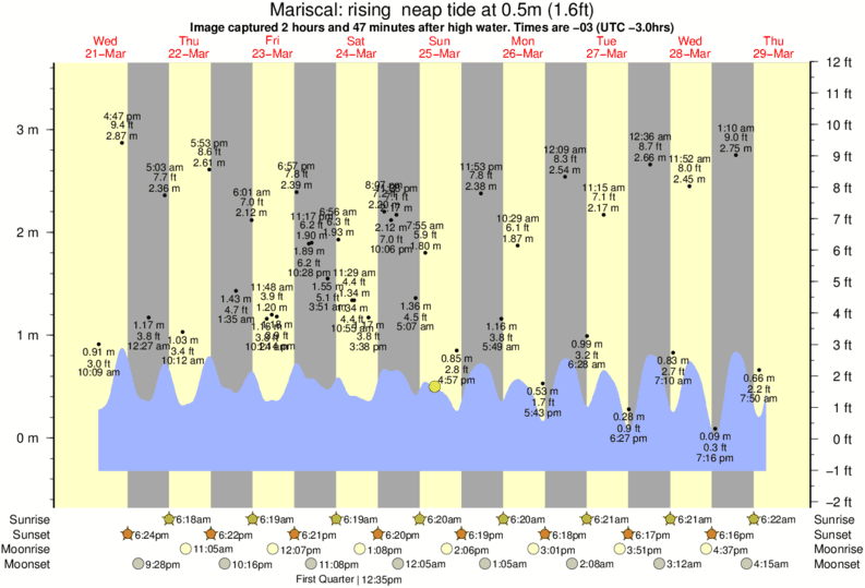 Image captured 2 hours and 47 minutes after high water (rising neap tide). Tide height was 0.5m (1.6 ft). Range 3.61m (11.8 ft). Toggle tide graph