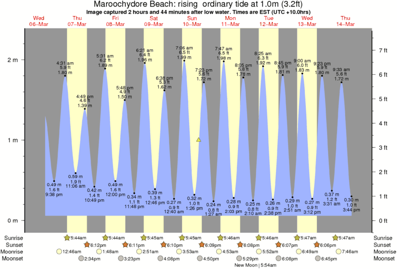 Image captured 2 hours and 44 minutes after low water (rising ordinary tide). Tide height was 1.0m (3.2 ft). Range 2.12m (7.0 ft). Toggle tide graph