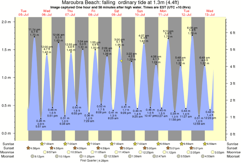 Image captured One hour and 58 minutes after high water (falling ordinary tide). Tide height was 1.3m (4.4 ft). Range 1.85m (6.1 ft). Toggle tide graph