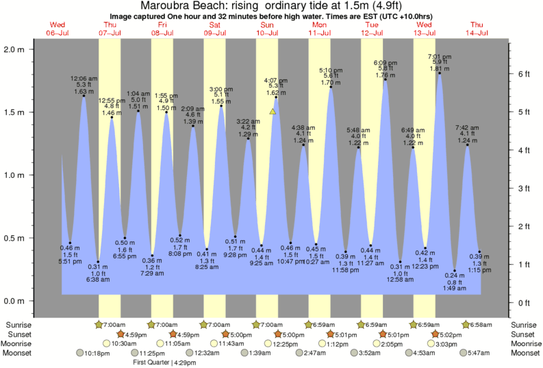 Image captured One hour and 32 minutes before high water (rising ordinary tide). Tide height was 1.5m (4.9 ft). Range 1.85m (6.1 ft). Toggle tide graph