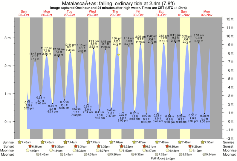 Image captured One hour and 24 minutes after high water (falling ordinary tide). Tide height was 2.4m (7.8 ft). Range 3.64m (11.9 ft). Toggle tide graph