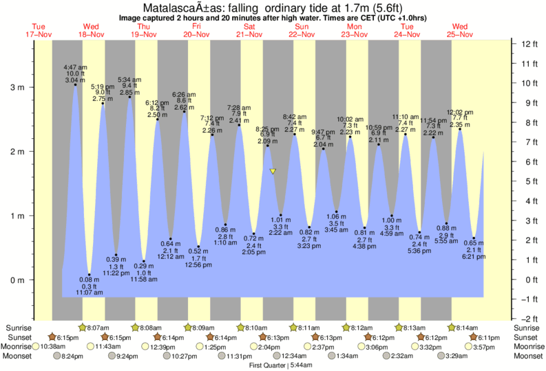 Image captured 2 hours and 20 minutes after high water (falling ordinary tide). Tide height was 1.7m (5.6 ft). Range 3.64m (11.9 ft). Toggle tide graph