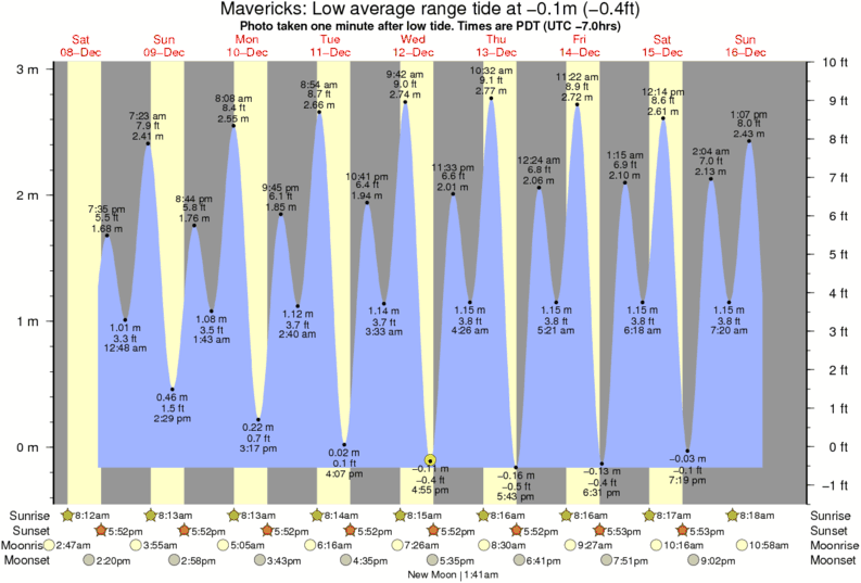 Forecast wind and swell just offshore from Mavericks around the time the photo was taken