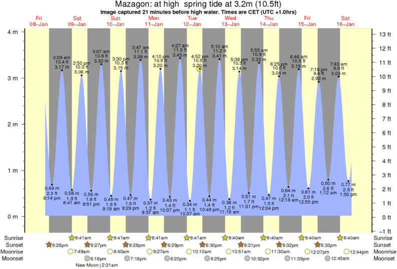 Image captured 21 minutes before high water (at high spring tide). Tide height was 3.2m (10.5 ft). Range 3.69m (12.1 ft). Toggle tide graph