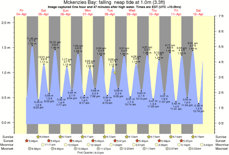 Image captured One hour and 47 minutes after high water (falling neap tide). Tide height was 1.0m (3.3 ft). Range 1.96m (6.4 ft). Toggle tide graph