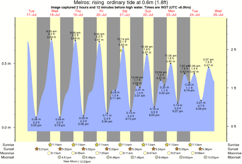 Image captured 2 hours and 12 minutes before high water (rising ordinary tide). Tide height was 0.6m (1.8 ft). Range 0.81m (2.7 ft). Toggle tide graph