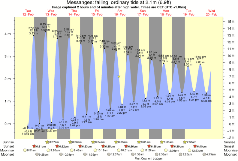 Image captured 2 hours and 54 minutes after high water (falling ordinary tide). Tide height was 2.1m (6.9 ft). Range 4.53m (14.9 ft). Toggle tide graph
