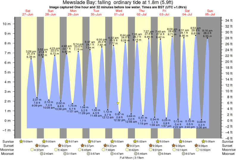 Image captured One hour and 32 minutes before low water (falling ordinary tide). Tide height was 1.8m (5.9 ft). Range 10.48m (34.4 ft). Toggle tide graph