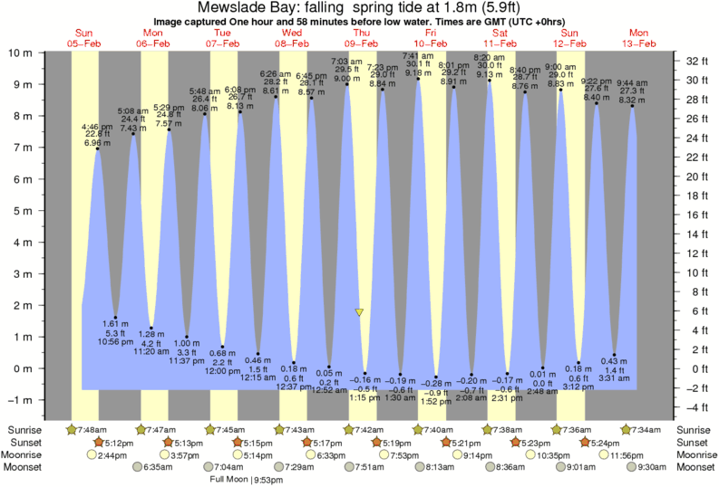 Image captured One hour and 58 minutes before low water (falling spring tide). Tide height was 1.8m (5.9 ft). Range 9.76m (32.0 ft). Toggle tide graph