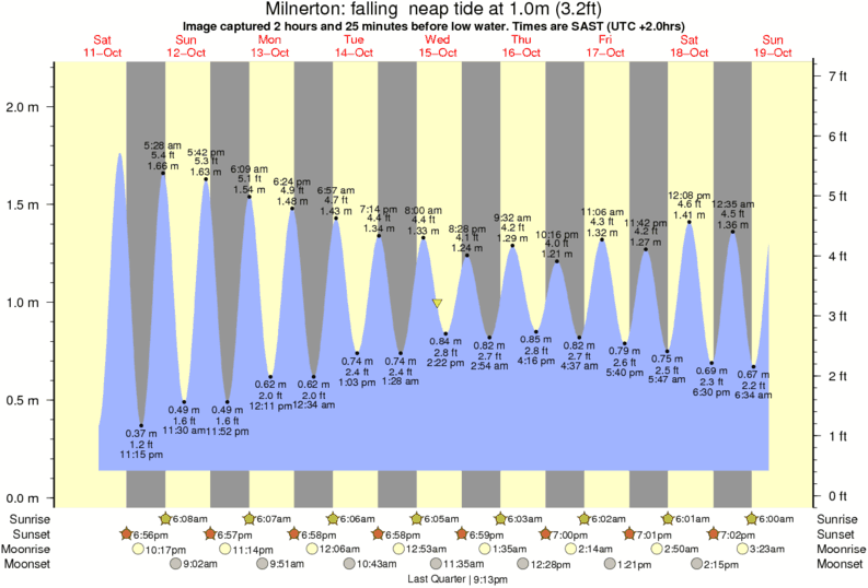 Image captured 2 hours and 25 minutes before low water (falling neap tide). Tide height was 1.0m (3.2 ft). Range 1.90m (6.2 ft). Toggle tide graph