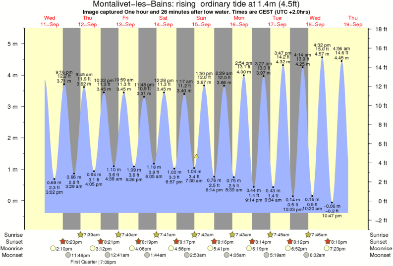 Forecast wind and swell just offshore from Montalivet-les-Bains around the time the photo was taken