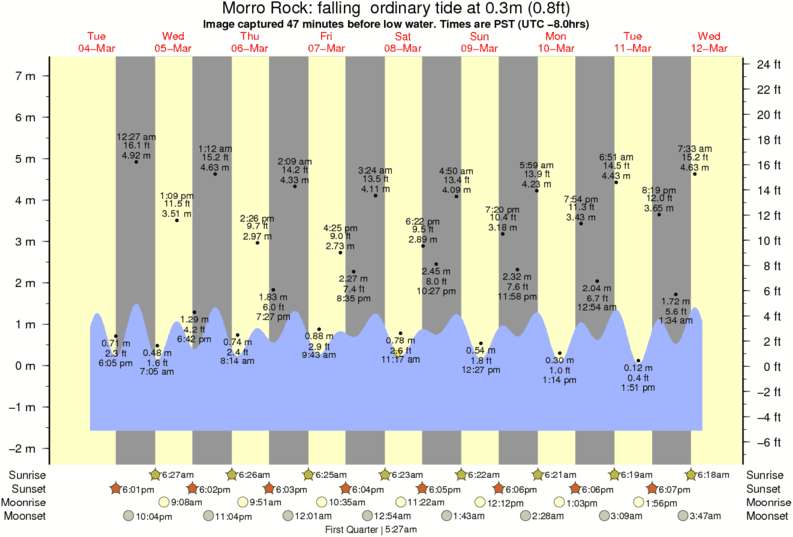 Image captured 47 minutes before low water (falling ordinary tide). Tide height was 0.3m (0.8 ft). Range 8.22m (27.0 ft). Toggle tide graph