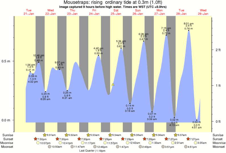 Image captured 9 hours before high water (rising ordinary tide). Tide height was 0.3m (1.0 ft). Range 0.82m (2.7 ft). Toggle tide graph