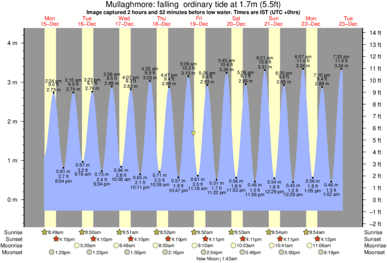 Image captured 2 hours and 52 minutes before low water (falling ordinary tide). Tide height was 1.7m (5.5 ft). Range 4.24m (13.9 ft). Toggle tide graph