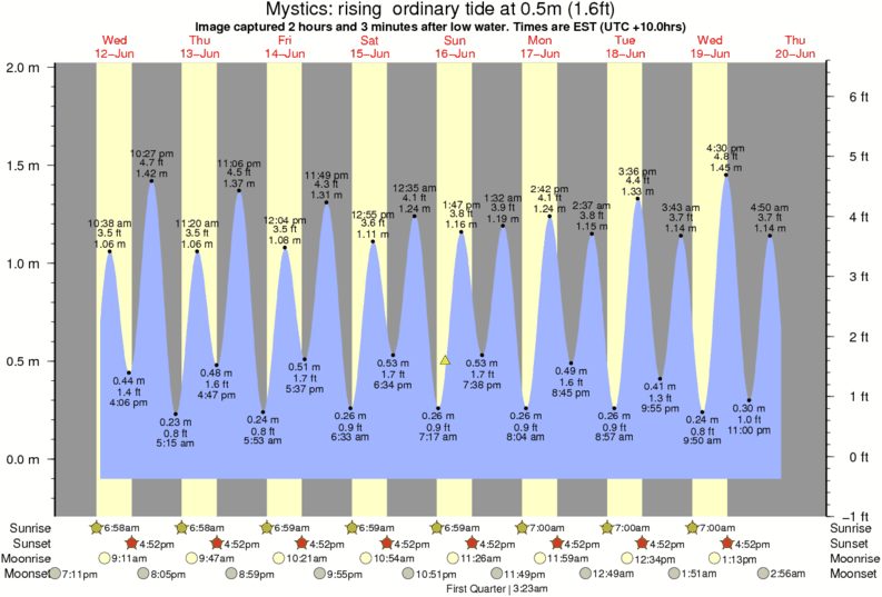 Image captured 2 hours and 3 minutes after low water (rising ordinary tide). Tide height was 0.5m (1.6 ft). Range 1.93m (6.3 ft). Toggle tide graph