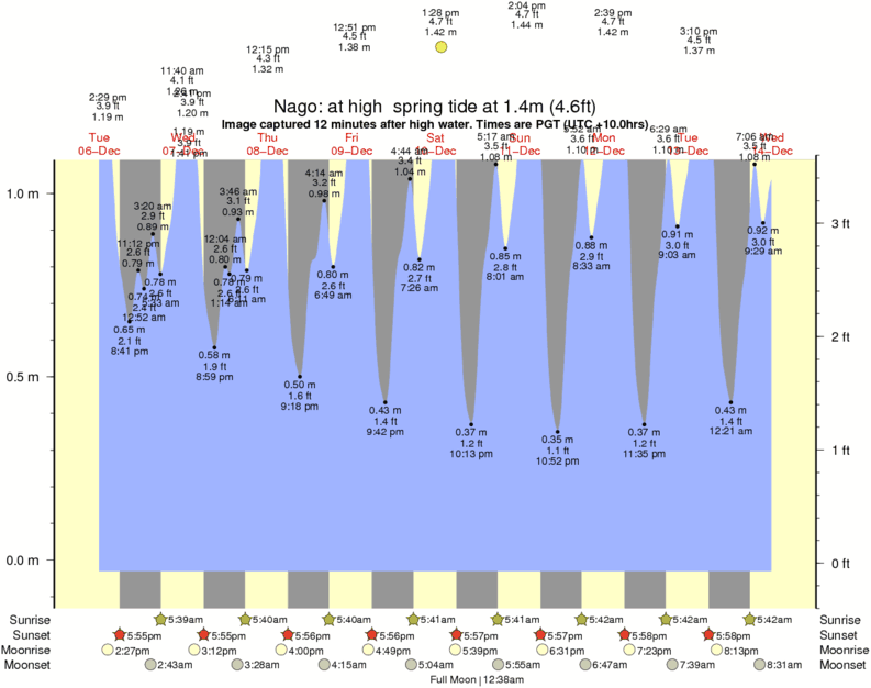 Forecast wind and swell just offshore from Nago around the time the photo was taken