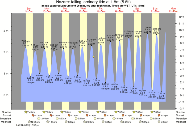 Forecast wind and swell just offshore from Nazare around the time the photo was taken