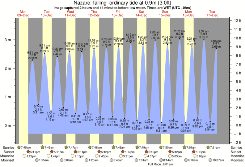 Forecast wind and swell just offshore from Nazare around the time the photo was taken