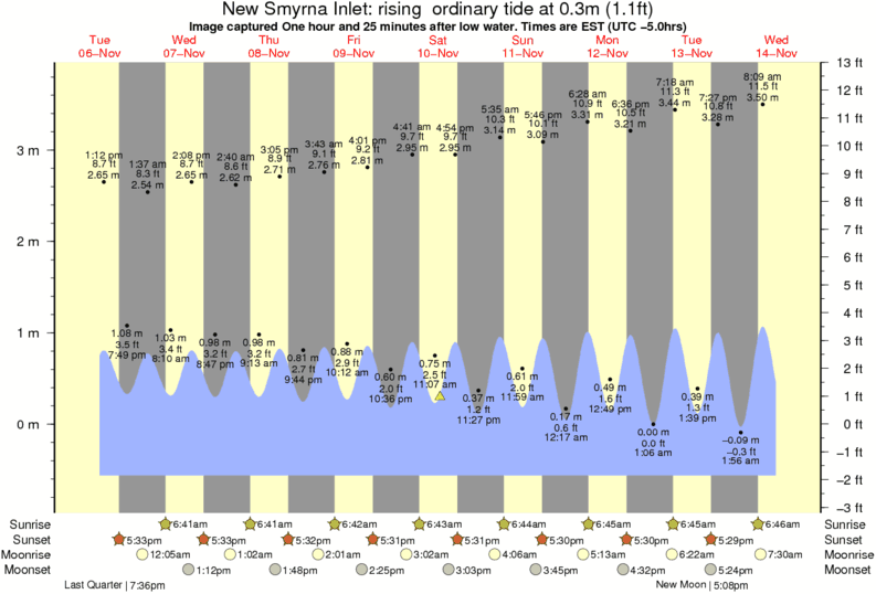 Image captured One hour and 25 minutes after low water (rising ordinary tide). Tide height was 0.3m (1.1 ft). Range 4.11m (13.5 ft). Toggle tide graph