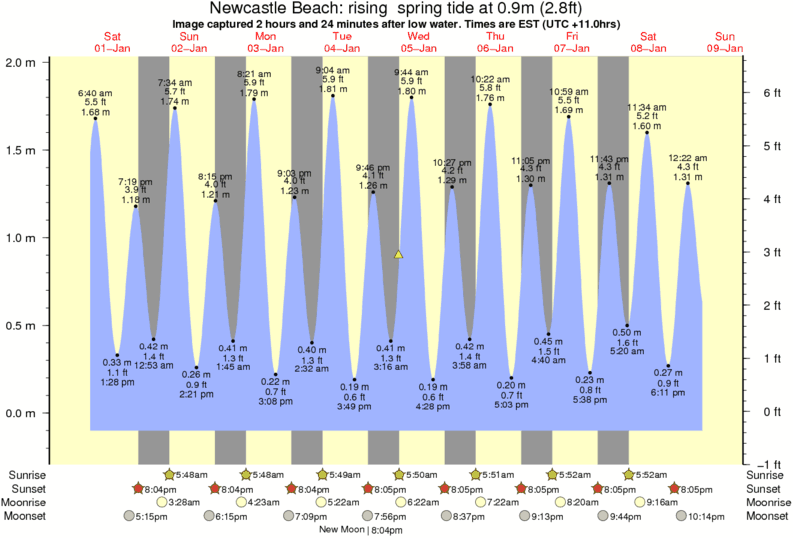Forecast wind and swell just offshore from Newcastle Beach around the time the photo was taken