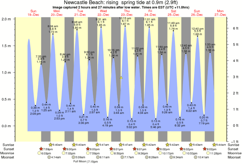 Forecast wind and swell just offshore from Newcastle Beach around the time the photo was taken