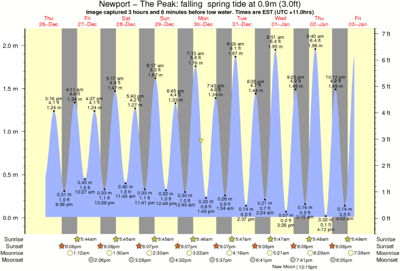 Image captured 3 hours and 6 minutes before low water (falling spring tide). Tide height was 0.9m (3.0 ft). Range 1.99m (6.5 ft). Toggle tide graph