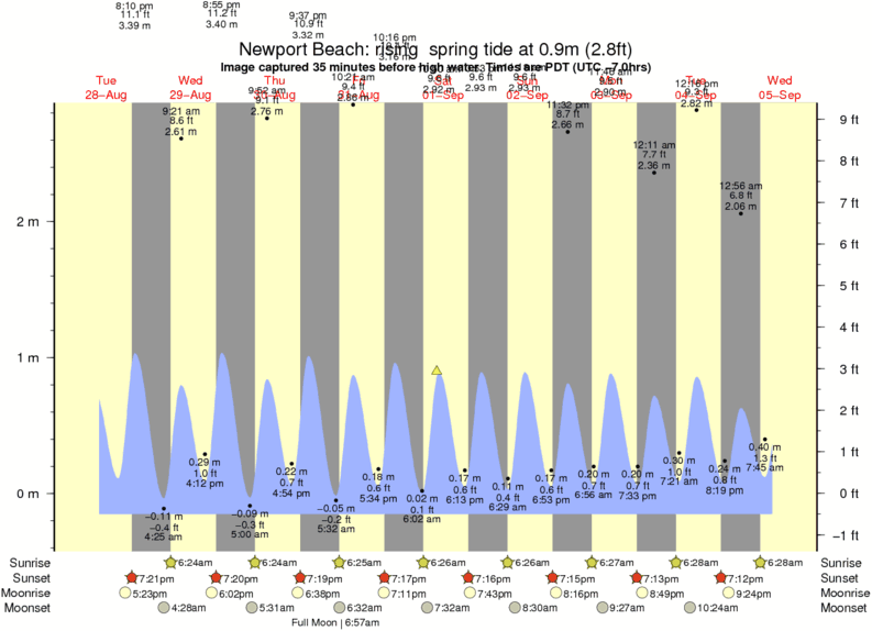Forecast wind and swell just offshore from Newport Beach around the time the photo was taken
