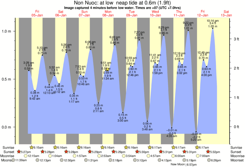 Image captured 4 minutes before low water (at low neap tide). Tide height was 0.6m (1.9 ft). Range 1.10m (3.6 ft). Toggle tide graph